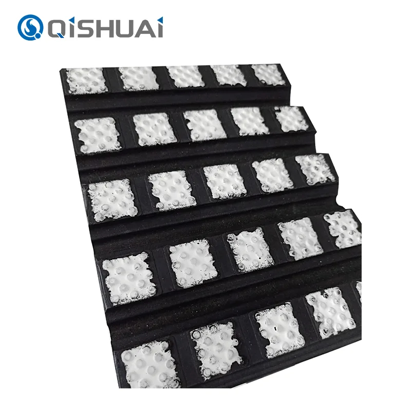 Slip minangka masalah sing angel nalika transportasi materi. Ora mung nyuda efisiensi transmisi nanging uga bisa nyebabake akumulasi materi, kegagalan peralatan, lan sawetara masalah liyane. Produk kita saka Shandong Qishuai Wear-Resistant Equipment Co., Ltd. sampurna ngatasi masalah iki liwat desain permukaan sing unik. Partikel keramik kanthi acak ing permukaan, lan ana partikel cilik sing ora kaetung kanggo nambah gesekan karo bahan.